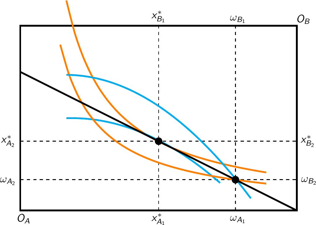 Anfangsausstattungen \(\omega_{A_1}\), \(\omega_{B_1}\) etc.