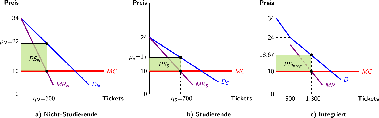 Betrachten Sie drei Industrien, die Sie gut kennen. Welche der von uns behandelten Preisstrategien können Sie dort finden? Welche Voraussetzungen sind jeweils erfüllt? Welche Wohlfahrtsimplikationen gibt es?